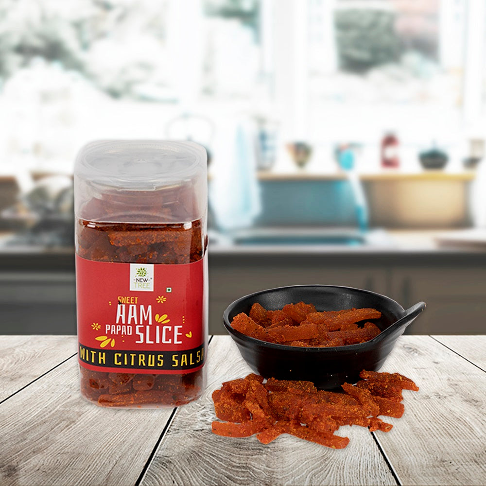 Say hello to your new guilty pleasure – Citrus Salsa Meetha Aam Papad! This isn’t your average mango treat. It’s a juicy blend of ripe mango sweetness with a zesty citrus twist and a light salsa-style kick that keeps you reaching for more.